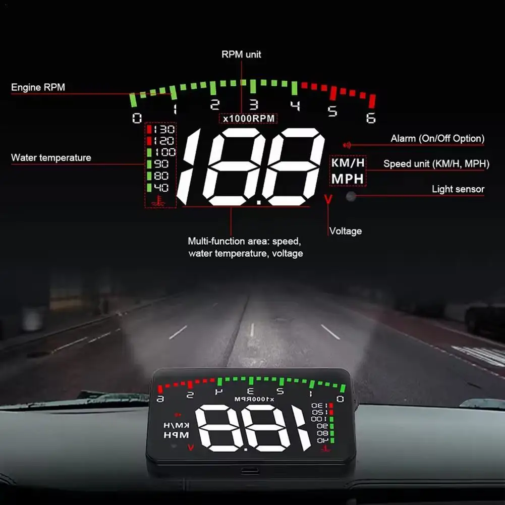 Π£ΡΡΡΠΎΠΉΡΡΠ²ΠΎ ΠΏΠΎΠ΄ΠΊΠ»ΡΡΠ°Π΅ΡΡΡ ΠΊ OBD2-ΡΠ°Π·ΡΡΠΌΡ Π°Π²ΡΠΎΠΌΠΎΠ±ΠΈΠ»Ρ ΠΈ ΠΏΠΎΠ»ΡΡΠ°Π΅Ρ Π΄Π°Π½Π½ΡΠ΅ ΠΎΡ Π±ΠΎΡΡΠΎΠ²ΠΎΠ³ΠΎ ΠΊΠΎΠΌΠΏΡΡΡΠ΅ΡΠ°. ΠΠ°ΡΠ΅ΠΌ ΡΡΠΈ Π΄Π°Π½Π½ΡΠ΅ ΠΎΡΠΎΠ±ΡΠ°ΠΆΠ°ΡΡΡΡ Π½Π° Π»ΠΎΠ±ΠΎΠ²ΠΎΠΌ ΡΡΠ΅ΠΊΠ»Π΅ ΠΏΠ΅ΡΠ΅Π΄ Π²ΠΎΠ΄ΠΈΡΠ΅Π»Π΅ΠΌ. ΠΡΠΎ ΠΏΠΎΠ·Π²ΠΎΠ»ΡΠ΅Ρ Π²ΠΎΠ΄ΠΈΡΠ΅Π»Ρ Π½Π΅ ΠΎΡΠ²Π»Π΅ΠΊΠ°ΡΡΡΡ ΠΎΡ Π΄ΠΎΡΠΎΠ³ΠΈ ΠΈ Π½Π΅ ΡΠΌΠΎΡΡΠ΅ΡΡ Π½Π° ΠΏΡΠΈΠ±ΠΎΡΠ½ΡΡ ΠΏΠ°Π½Π΅Π»Ρ.